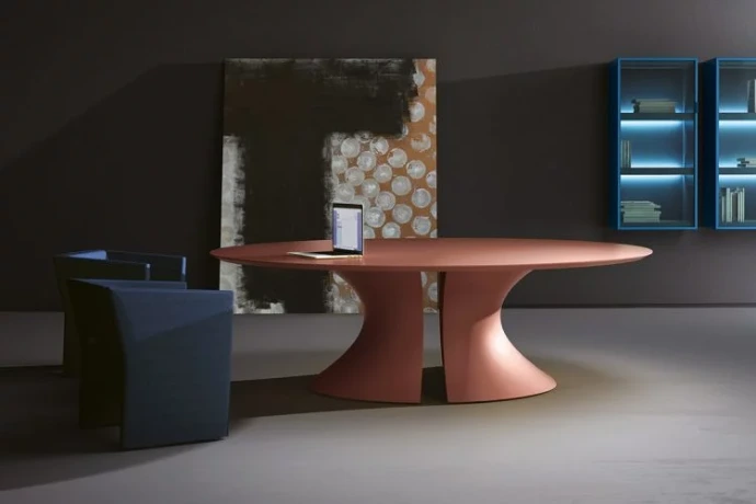 De Ola-vergadertafel wordt gekenmerkt door de krachtige en sculpturale vorm van de schelpvormige basissen. Ola maakt het mogelijk een prestigieus kantoor te creëren met zachte lijnen die een huiselijk gevoel oproepen.